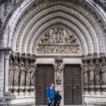 Two fun people in front of the cathedral