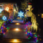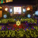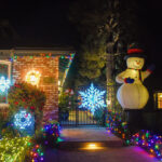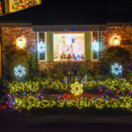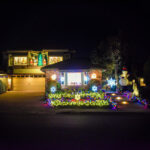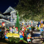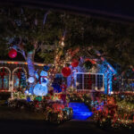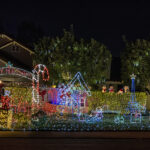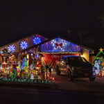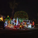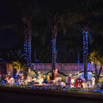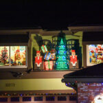 This evening, we went for an amazing Greek meal at Greek Bistro in Laguna Hills. WOW! It might even be better than Chris’ Taverna (my favorite Greek restaurant in Florida—I love Greek food, and we have a hard time finding it in Redmond). Then, after, we were off to look at some of the most amazing Christmas light displays we have ever seen. In case you haven’t seen the photos my brother posted of their house, they are REALLY into decorating for holidays, and they do a super classic job of it. Here’s what their place looks like this year. All of these pics are ones that I stole from him. It is truly impressive. You will note that every window has a theme.