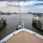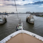 After they finally got the lines off the ship, we were underway, and the sail out was very different. We were led out by both a pilot boat and a big tug. The best part of the sail out was getting to photograph the entire trip on the Thames. We went through the Thames Barrier (used to control the tides), passed another cruise ship , and went past the 02 tent and lots of parts of eastern London. I will let my pics give you the rest of the story on the sail out. Don’t forget; if you click the first shot, you can then scroll through with your arrow keys or by swiping…and PLEASE…don’t look at my photography on a phone. Please…
