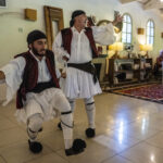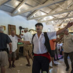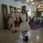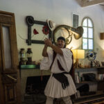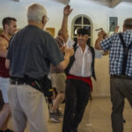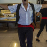 At this point (realize it is now 5:15 pm and the ship wants everyone back by 6:00) and a troupe of Greek dancers starts to entertain. We thought, OK, they will do two dances and we will be out of here in plenty of time to get back by 6:00 (the ship was about 35 minutes away). But no, they danced right up until 5:45 and the big problem was…they were GREAT! Hilarious. I have to say that everyone had a wonderful time with them. They dragged a bunch of people onto the dance floor and even had some people dancing on the tables. They were outstanding. Here are some very fun pics I got to take. As you can see, I made photo friends with the big guy.