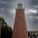 - The lighthouse and blue skies.