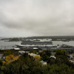 It’s 5:00 a.m. on Sunday, and it has been a very long and bumpy night. We have been skirting the edge of Hurricane Phillipe since we left Portland yesterday afternoon, rocking and rolling like Elvis in his prime. We are still moving a lot, but not as much as last night. Walking down to Martinis, where I write in the mornings, I didn’t see any damage, but they do have fans out to dry carpets…which is interesting. The only thing we personally had happen in the night was the tongs falling off our ice bucket. It made a lot of noise, but that was about it. Happily, our stop today (Martha’s Vineyard) is supposed to be sunny and in the 60s. We shall see.
