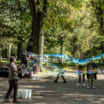 - A statue outside the southwest corner of the park