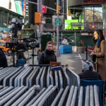 - A live on-the-street newscast going on.